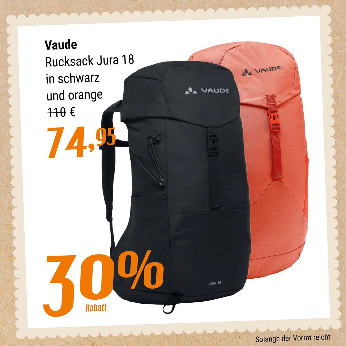 Der Vaude Jura 18 ist ein klassischer Wanderrucksack für Tagestouren. Mit einem Volumen von 18 Litern bietet er ausreichend Platz für Verpflegung, Regenjacke und Ausrüstung. Das Aeroflex-Rückensystem sorgt für sehr gute Belüftung, während das Gewicht von nur 930 g den Rucksack angenehm leicht macht. Mit Trinksystem-Ausgang, Regenhülle und praktischer Fächeraufteilung ist er ein vielseitiger Begleiter.