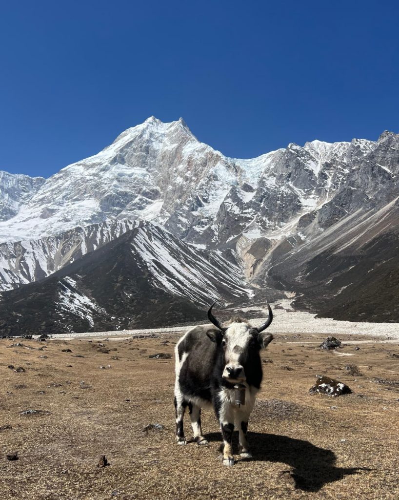 Ab dem vierten Tag zeigte sich der Manaslu zum ersten Mal. Auch in großen Höhen leben Menschen in den Bergdörfern. Anna und Sophia lernten auf ihrer Tour nicht nur die beeindruckende Natur kennen, sondern bekamen auch Einblicke in den Alltag vor Ort: Lebensmittel und Gas werden von Mulis über Tage hinweg in die Dörfer transportiert, fließendes Wasser ist nicht überall selbstverständlich. Viele Familien betreiben auf über 3500 m Selbstversorgung mit Tieren und Pflanzen und leben eng mit ihnen zusammen.